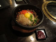 理由 すき焼き風に甘辛く味付けしたこま切れのお肉を、玉ねぎやマッシュルーム、パプリカなどの野菜と一緒に炒めた、牛角オリジナルのビビンバです。石鍋が熱々のうちに卵の黄身をかき混ぜ2分ほどおいたら食べごろ。お好みでコチジャンを加えて、スパイシー加減を調節していただけます。