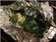 カレー風味のスパイスで味付けしたマヒマヒのホイル焼き。