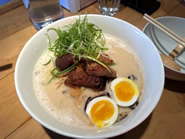 まずは人気のバンズメニューから、Berkshire Pork Bellyと6hrs. Pork Shoulderを頼みました。Pork Bellyは、程よい甘さのテリヤキソースが絡まっていて、万人間違いなしの美味しさ。Pork Shoulderはメニュー名に6hrsとある通り、6時間も煮込んだ柔らかい豚肉にザワークラウトを組み合わせています。ユニークなコンビネーションですが、これが意外にもマッチしています。自慢のフカフカのバンズも美味しいので、ラーメンと合わせて、ぜひ試してみてください。