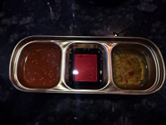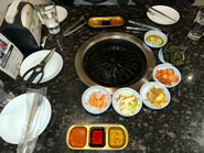まずはバンチャン(韓国の小皿料理)と漬けダレがやってきました お勧めのカルビ肉を焼いていきます! たれは味噌味、醤油味、ピリ辛味の3種類があります