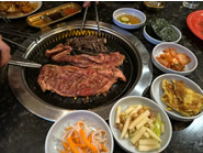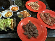 同店で一番人気なのは、90分の食べ放題メニューです。注意点としては、テーブルで食べ放題を1人が選択した場合、同席者も同じメニューを注文しなければならないシステムということ。ただし、大人1名につき6歳以下の子供1名は無料です。食べ放題メニューのお肉には、Flat Ironや、Beef Bulgogi、Beef Brisketなどの7種類の牛肉と数種類の豚肉と鶏肉がありますが、取材班のお勧めは骨付きカルビです。人気の部位なので常時あるとは限らないのですが、そもそも、食べ放題メニューに骨付きカルビを提供しているところは少ないですし、お肉の旨味が一番感じ取れる部分ですので、コレがあるときは是非、骨付きカルビをオーダーしてみてください。ソースは味噌味、醤油味、ピリ辛味の3種類があり、それぞれ特色があるので、お好みの組み合わせで焼肉を楽しめます。お肉の他にはベビーオクトパスやエビ、イカなどの魚介類、豆腐やズッキーニ、サツマイモ、マッシュルームなどのベジタリアンメニュー、麺類やチャーハンなどのご飯類も様々なチョイスがあります。ご飯メニューには記載されていないのですが、お願いすれば白米も持ってきてくれます。