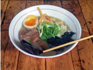ケージフリーの鶏の骨から長時間煮込んだクリーミーなスープが自慢。チャーシューは黒豚かケージフリー鶏のモモ肉からお選びいただけます。