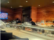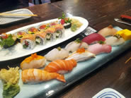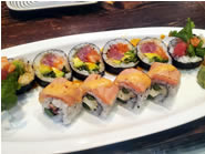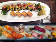当日のおまかせ寿司にはエビやホワイトツナ、サーモン、マグロ、マダイ、ブリ、ヒラメ、サバ、そしてギョク(すし卵)もついていました。どのネタも鮮度の良さが伝わるものばかりでお勧めですが、特にホワイトツナは美味でした。おまかせ寿司にはトマトとキュウリ、葉野菜のミニサラダ、そして豆腐とワカメ、ネギの味噌汁がセットになっています。創作巻寿司の「MEXICANA」は同店のメニューの中でも特に注文率が高いという人気メニュー。マグロとサーモン、とびこ、アボカド、スパイシーマヨネーズ、それにチリオイルのかかった典型的なアメリカンロールではありますが、ピリッとした辛さとボリュームが魅力です。「SUNBURN ROLL」は中にクリームチーズとりんご、アスパラガスを入れて、酢飯とスモークサーモンで巻いています。上にかかった特製ソースや、スモークサーモンとクリームチーズの相性は言うまでもなくバッチリですし、りんごの甘酸っぱさも絶妙でした。