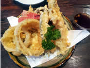 今回はアペタイザーに天ぷらプレート、メインにおまかせ10貫の握りと創作巻寿司の「MEXICANA」&「SUNBURN ROLL」を頼みました。天ぷらプレートにはエビが2尾と玉ねぎ、かぼちゃ、パプリカ、そしてレンコンがのっています。熱々出来立ての天ぷらはサクッとしていてツユも本格的で大満足。