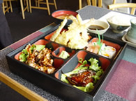 1) 幕の内弁当 理由 香ばしいチキン照焼、天ぷら、カリフォルニアロール、鯖の照焼とバラエティに富んでいる。