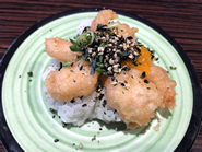 今回はオーソドックスなものに加えてGarlic Ponzu TunaやIshizawa Seared Marinated Salmon、Seared Shrimp with Yuzu Salt、それにSeared Beef with Yakiniku Sauceといった和風テイストをきかせたオリジナルのお寿司にもトライ。どれも日本人の口にあうものばかりですが、中でもゆず塩やクラ寿司で大人気の”石澤ドレッシング”を使ったものは、舌先にほんのりと残る繊細な味わいが後を引く美味しさです。また、変わり種の炙りビーフも程よくのった肉脂の甘みが意外に寿司飯にマッチしていますし、小エビの天ぷらを上にのせたPopcorn Shrimp Rollも、一口サイズでとても食べやすいと取材班に好評でした。ただし、下味をつけたマグロと調理した鶉の黄身をのせたTuna Yukhoeは、口に入れた時の具材の一体感がないと人気がありませんでした。小さな竹筒の容器に入ったMini Crab Cupは可愛らしいサイズのバラ寿司で、ちょこっと食べたい女性や子供にもピッタリ。また、サイドメニューから半玉サイズのとんこつラーメンとキツネうどんを頼んだところ、うどんは麺にコシがあって少し濃いめのスープがお寿司にもよく合いますし、モッチリとした太麺を使ったラーメンもコクのあるとんこつスープがしっかりと絡んでいて、単品でも頼みたいくらいの美味しさでした。