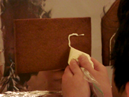 ハーブとニンニクを入れたお尻を閉じて、楊枝で留める。 |