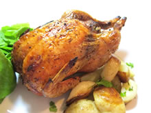 大さじ1グリル野菜を添える場合には、鶏の焼き上がり20〜30分ほど前に、鶏の周りに入れて一緒に焼く。 |