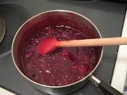 クランベリーの皮がはじけて煮崩れていたら完成ですので、火からおろしましょう。