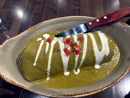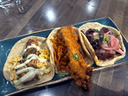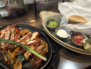 1.  Steak & Chicken Burritoは、約2ポンド(約900g)という圧巻のボリューム。トルティーヤの中には、ベルペッパー、オニオン、チャードスイートコーン、シトラスライムライス、黒豆、アボカド・セラーノサルサ、ケソソースがぎっしり詰まり、さらに焼きポブラノクリーム、サワークリーム、ピコ・デ・ガヨが鮮やかなグリーンソースとしてたっぷりとかかっています。今回はステーキとチキンのコンビネーションを選びましたが、風味豊かな肉の旨みを存分に堪能でき、大満足。しっとり系のブリトーが好きな方にはたまらない一品です。Chicken Fajitasは、たっぷりの野菜と柔らかく、控えめな味付けのチキンが特徴。トルティーヤはコーンとフラワーから選べます。メインディッシュのシグネチャーでもあるタコスは、Street Tacos(より伝統的でシンプルな構成に、個性的なプロテイン)と、Avenue Tacos(具材が豪華でグルメ感・高級感のあるタイプ)がそれぞれ7種類ずつ用意されています。基本はソフトコーントルティーヤですが、フラワーやレタスラップ(追加料金)への変更も可能です。