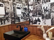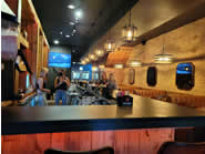 「アスペンやレイクタホまで行かなくても、シカゴでスキーリゾート気分を味わえる!」をコンセプトにした「Chalet」をご紹介します。こちらのお店は2021年10月1日に出来たばかりの新しいレストランで、グルメなアメリカンフードとお洒落なオリジナル・カクテルを、素敵なロッジ風の店内で堪能できます。ダークブルーのレンガ壁で造られたモダンな佇まいのお店は、雪山のロゴマークが目印です。山小屋のような温かみのある店内にもレンガ壁が使われており、そこにもダイナミックな雪山のイラストが描かれています。また店内のテレビ画面にはスキーの映像が流れ、壁や照明にも雪とスキーをテーマにした装飾品が使われており、トイレ前の一角はスキーリフトのベンチや、レトロなスキー板やポールが飾られた素敵な写真スポットになもなっています!ちなみにトイレ内もスキーの写真が一面に貼られており、どこもかしこもスキー一色でした。今回は1階のダイニングで食事をしましたが、2階席もありそちらはイベント用などに貸し切りすることが可能だそうです。予約はオンラインからも出来ます。