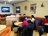 きなこをうっすらまぶした小豆やシリアル、バナナ、イチゴ、餅、そして抹茶アイスをのせたカラフルな抹茶のカキ氷。抹茶に小豆、餅といった日本人に馴染みのある懐かしい具の組み合わせや、苦味のある抹茶アイスのすっきりした味わいがとってもいいです。一人用のカップ・タイプでも十分満足感がありますが、韓国人の間では大きな器に入ったレギュラーサイズを2、3人でシェアするのが人気のようです。 |
