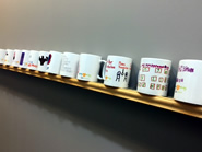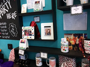 店内にはGigi Uの生徒達の作ったオリジナルギフト商品が並べられています。 個性豊かでユニークなデザインの描かれたマグ。 お茶を飲みながら自分のオリジナルマグを作成することも出来ます。