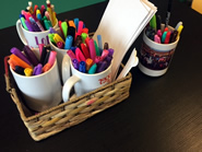 今回ご紹介する「Hugs & Mugs」は、ダウン症の人々とその家族をサポートをする無償団体”Gigi”グループが運営しているカフェです。ここで働くスタッフは隣接している”Gigi U”という、ダウン症の人々を対象とする学校の生徒達がインターンとして働いており、カフェにはクラスの一環で使う”Gigi Playhouse”というプレイエリアも併設されています。米国をはじめ世界的にダウン症の支援活動や事業を行う”Gigi”グループは、ここHoffman Estatesが本部ということで、カフェの奥には沢山のクラスルームもありました。