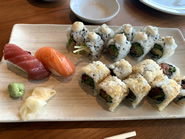 メインのチラシはすし飯の上に色々な種類のお刺身とアボカドなどの野菜の角切りが彩りよくのっています。気分が盛り上がるアートのような美しい見た目に加えて、刺身の新鮮さ、多すぎないご飯の量など、特に女性受けしそうなメニュー。焼き目が綺麗な銀鱈の西京焼きは外側はカリッと、中はしっとり焼きあがっています。銀鱈はそのままでも充分に美味しいですが、柚子がしっかりと香る柚子みそをつけるとさっぱりしていて、より一層美味しくいただけます。お寿司のセットについてですが、まずにぎりはシャリの大きさ、それに味ともに完璧!クランチースパイシーツナの巻物とサーモンアボカドの巻物もしっかりとロールされており、断面の美しさや具のバランス、巻き具合もバッチリで、こちらも大満足な仕上がりです。