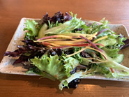 ランチセットのサラダには円やかな和風ドレッシングがかかっています こちらもランチセットのキムチ餃子。焼き立て熱々でキムチのほのかな味わいが◎ Ube Pot de Cremeは美しい色あいに加えて滑らかな食感や甘さ具合もバッチリ