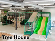 アスレチックジム子供用の室内プレイグラウンド。食事もでき大人が寛げるスペースもあります。 |