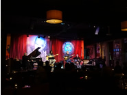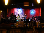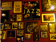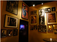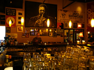 入口ドアから会場へ一歩足を踏み入れると最初に目を引くのが正面奥、ステージ背後に掲げられたチャーリー・パーカー(モダンジャズの創始者)のポートレート。客席を囲む壁面には著名ミュージシャンの写真や過去のライブカレンダーが所狭しと並んでいて、お店の誇りと歴史を感じさせます。