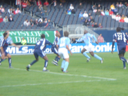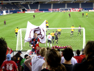 迫力のコーナーキック ハーフタイムに行われるガールズサッカー。いい思い出になるでしょうね。 Firehouseの応援団。点が入ると紙テープが舞い飛び大騒ぎ。