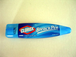 Bleach Pen」です。漂白剤で知られるクロロックス社の新製品。ペンの中に漂白剤が入っている、とそれだけなんですが、これが使い勝手良いのなんのって!バスルームやキッチンシンクなど、白いタイルのある場所、水回りの激しい場所って、ピンクっぽい水垢やカビにやられて、なんとも見た目が汚くなってしまいがち。そんな時に、このブリーチペンで「ふふっふ〜ん」と鼻歌でも歌いながら部分的に漂白する事ができるんです。その昔、母がキッチンハイターでまな板や布巾を漂白していたなぁ、あの時は「漂白剤は危険だから子供はよってきちゃダメ!」とかなり厳しく言われたなぁ、なんて思い出したりしてる間に、あらまぁ、きれいに真っ白になっちゃいました。両サイドに2種類の大きさのペン先が備わっているので、例えばタイルとタイルの隙間などは「細め」で、シンクの黒ずみなどは「太め」で、と使い分けができます。特製の「メグネット付きペンホルダー」に入って売っているものもあり、冷蔵庫のドアにいつもおいておけるのも便利、便利(お子様の手の届かない所にね)。そうそう、お洗濯の友、としても大活躍です。白いシャツについた口紅やしつこい泥汚れなどなど、このペンで部分的に漂白できちゃうんです。逆に、黒や紫などの濃い色のシャツに何かデザインを入れたいとき、このブリーチペンで絵をかくと、その部分だけ色白く浮かび上がってきます。そう、あなただけのクリエイティブな、そしてちょっとヒッピーなデザイン・シャツのできあがり〜。どうです?なんとなく使いにくい漂白剤も、ペン型になってくれたおかげで用途がひろがるでしょう?