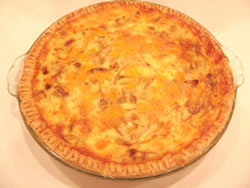 子供の頃から、タマネギなどのネギ類が大好物。ただ、食べると、口の中が「ネギネギネギ、、」と、呪いがかかったかのように、クッサーくなるのですが、このキッシュはその問題をクリアした!それにしても、材料にタマネギ2lb(900g)は多すぎ!と思うでしょ? だけど、タマネギはほとんどが水分なので、実際に炒めてしまうと、6oz(180g)ほどに減ってしまうのです。そして、炒めたタマネギは、砂糖をかけたように甘〜い。ちょっと、炒めるのに時間がかかってしまいますが、その価値はありますので、お試しください。前日に作っておいて、翌朝温めて食べると、シアワセな味です。ハーフ&ハーフ牛乳とは、半分クリーム、半分牛乳の混合牛乳の事です。