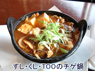 ミヨ:「これはポン酢につけて食べるんだけど、ダシの味もしっかりついているのでそのままでも十分に美味しいよね。大根の下にはタラや豆腐、白菜、それにシイタケも入ってる。そしてこちらのチゲ鍋には、特製の合わせコチジャンを使っているので、普通のチゲ鍋と比べると独特の甘辛さがあるのが特徴なの。」