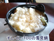 ミヨ:「大根おろしのた〜っぷり入った雪見鍋は、かつおベースのダシがいい香りでしょ。大根おろしもスルッとした舌触りの食感で食べられるよう、あえて目の細かいすり器を使ってるだって。」