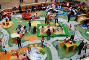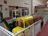 Flatables。5000ft squareの店内では、滑り台やトランポリンが子供たちをまっています。他にも、小さい子供が無料で利用出来るプレイエリアや有料のメリーゴーランド、モール内を走る汽車もあります。映画館のCENTURY