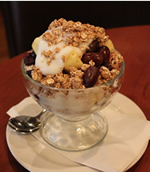 たま:うわ〜これは大きなパフェですね!えっと、ヨーグルトに、シナモンが効いたグラノラ、イチゴ、パイナップル、グレープ、それにクランベリーが入ってるのかな。朝からビタミンC