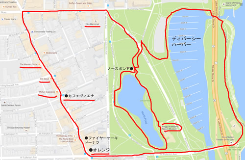 先輩:確かにね。さて、それでは最後にこのルートのメインセクションでもあるディバーシー・ハーバーとレイクフロントトレイルのコースを紹介しよう。ノースポンド(店)の東側にあるCanon