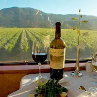 今回はちょっと奮発して展望車両をチョイス。昔の車両を改装しているのでちょっと席は狭いかな?と思いましたが、アンティークな感じがおしゃれ。スパークリングワインから始まり、あれこれ言いながら、メニューを選び、ゆったりと外の景色を見ながらのお食事。ウェイターの方もとても親切で、料理の事から外に見えるワイナリーの説明まで教えてくれます。有料ですが、ワインテースティングもできます。ワインを知り尽くしたスタッフのお陰で、やっとお気に入りがみつかりました。忘れる前にちゃんとメモして、デザートまでしっかり食べてしまいました。