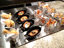 ラスベガスの食事といえば、バフェですが、今現在ラスベガスナンバーワンといわれているのは、今年9月に改装を終えたばかり、シーザーズパレスホテル内にあるバカナル・バフェ。売りは500種類以上、そのうち8割はお客様の前で調理する事。オープンしたばっかり、地元のお客様も詰め替えており、平均1時間半の待ち時間らしいですが、それだけまっても食べる価値あり!おすしも、機械で握るのではなく職人さんが握っています。ラーメン、うどん、飲茶など、洋食に飽きた人にもお勧め。でもやっぱり一番人気はシーフード。オイスター、海老、蟹も並びます。味だけでなくて、見た目も小皿が多くとても可愛らしく、大満足。料金は、平日、週末やホリデー等で異なりますが、ディナーは約35ドルから。