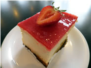 見た目こそどっしり重たそうなチーズケーキですが、実際は軽い口あたりで味もシンプルです。土台のクッキー・クラストもチーズ・フィリングの部分も、余計な甘さがなくさっぱりとしていて印象的でした。 |