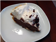 重量感のあるチョコクリーム・パイは、ダークチョコレートをふんだんに使ったチョコレートムースがとてもリッチ。甘さも控えめなので食べやすいですし、口の中でスッーと溶けていくような口どけのよさと、フワフワの生クリームのコンビネーションには虜にさせられます。 |