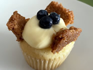 バニラとクリームチーズを練りこんだスポンジに、しっとりしたシナモングラハムクラッカーともったりとしたペイストリー・クリーム、それにブルーベリーをトッピングしています。可愛らしいデコレーションがとにかく目を惹きます。 |