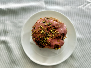 甘酸っぱいラズベリーグレーズに、ピスタチオの香ばしさが絶妙なアクセント。見た目も美しく、ギフトにも喜ばれそうです。 |