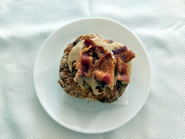 メープルグレイズの甘さに、カリカリベーコンの塩気がベストマッチ。甘じょっぱい味がやみつきになる美味しさ。 |