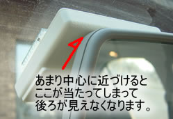 注意:貼り付けた後に、ちゃんとバックミラーの角度が元に戻せるように注意してください。あまり中心近くに貼り付けると、ミラーがデバイスに当たってしまう事があります。