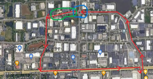その先のルートはうる覚えですが、車線変更を指示にしたがって何度かやりながら、ゴルフロードに出て免許センターに戻りました。
