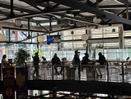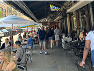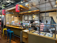 マーケットの1階にはさまざまなお店が集まっており、グルメな食べ物がたくさんあるので、どこに行くか迷ってしまいます。建物内は解放的な造りになっていて心地よいですし、モダンカジュアルなインテリアがおしゃれなので、週末はゆったりと食べ歩きをしに来るお客さんで賑わっています。各店舗は通路の両側に競い合うように所狭しと並んでおり、それぞれ趣向を凝らした独自のレイアウトでお客の目を引いています。1階で購入した食品は2階のイートインスペースで食べることができるのですが、日によっては同じエリアでクッキング教室やさまざまなイベント、貸し切りパーティーなども行われているので、とても賑やかです。屋外にはテーブルや椅子もありますが、マーケットの目の前をケーブルバスが通っているなど、シカゴにはない独特の雰囲気を味わうことができるので、屋外での食事もおすすめです。
