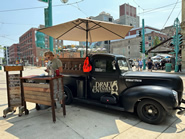 建物わきにも飲食スペースがあり、サイドウォーク沿いにはローカルブリューワリーのビールトラックが訪れることも