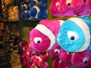 入り口付近にあるお土産コーナーは天井から巨大なタコがニョロっとぶら下がったカラフルなインテリアで、かわいい白クジラやカメのぬいぐるみはもちろん、絵本付きの小さなぬいぐるみセットや普通のグローサリーストアでは見かけることのないサメのグミなども売っている。
