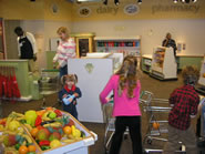 ここはいつも入場制限が出来る程、大人気の疑似体験スーパーDominick’sです。子供達が好きな担当になり買い物を楽しみます。店員になりキャッシャー担当をしたり、子供用カートを引いて日頃ママ達にダメだしされている好きな商品をドンドンカートに放り込める顧客になったりと、自分で役を選ぶ事が可能です。そして最後は持ち出しした商品を皆で手分けして元の場所に戻し、自分の事は自分でする感覚を楽しみながら身に付けられる様になっています。 |