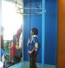 2階に上がると大きな天秤やパズルで数学の体験学習、ギャラリーではプロのアーティストの作品に触れながらアート作品を作り上げます。子供たちはみんな、全身を使って楽しんでます。ここの展示はどれも楽しく学ぶ工夫がされていて、勉強という雰囲気はまったく感じません。また、どのエリアにもボランティアがついているのでみんな順番に、やり方がわからず困ってしまうこともなくチャレンジできます。