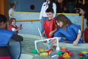 強い風のトンネルに入るときや、工作で工具を使う際にはゴーグルを、水のエリアではエプロンを着けることになっているので子供たちの「やりたい!」という気持ちと、親の「でも安全かしら?それに服がよごれちゃう、、、」という気持ち、両方ともに応えます。