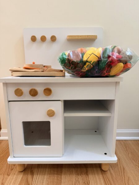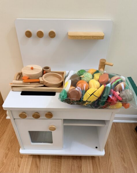 おままごとキッチン・木製調理器具・野菜果物のセットです。