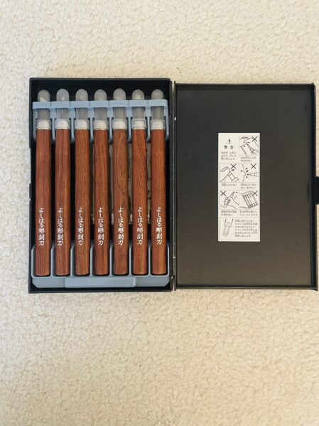 日本の小学校で使う彫刻刀セットです。