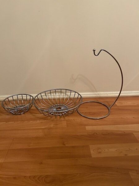 フルーツバスケット大、小とバナナハンガーのセットです。直径は大が30cm、小が20cmです。引取りはRolling Meadowsの自宅でお願いいたします。