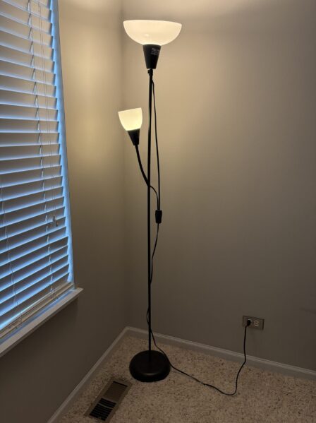 大きいライト、小さいライトそれぞれスイッチがあるので、どちらか片方や両方など光量を調整可能です。土台部分が重みがあるので簡単に倒れにくいです。