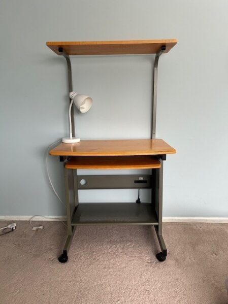 メインテーブルのサイズは幅80cm奥行50cmでキーボード用テーブルが引き出し式になっています。写真のデスクライトもお付けします。
